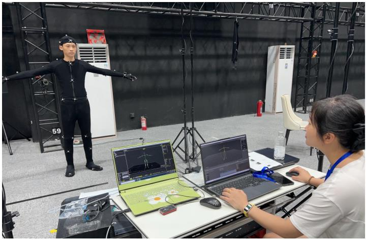尤为瞩目的是,本次参赛作品为数字媒体艺术专业首次将尖端动作捕捉技术深度应用于数字人动画创作实践。据悉,作品借助高精度五维动作捕捉设备,完整采集并重构了真实人体动态数据,在虚拟空间中赋予数字人角色以流畅、细腻且极富生命力的运动表现,成功克服了艺术表达与技术实现之间融合的关键挑战。