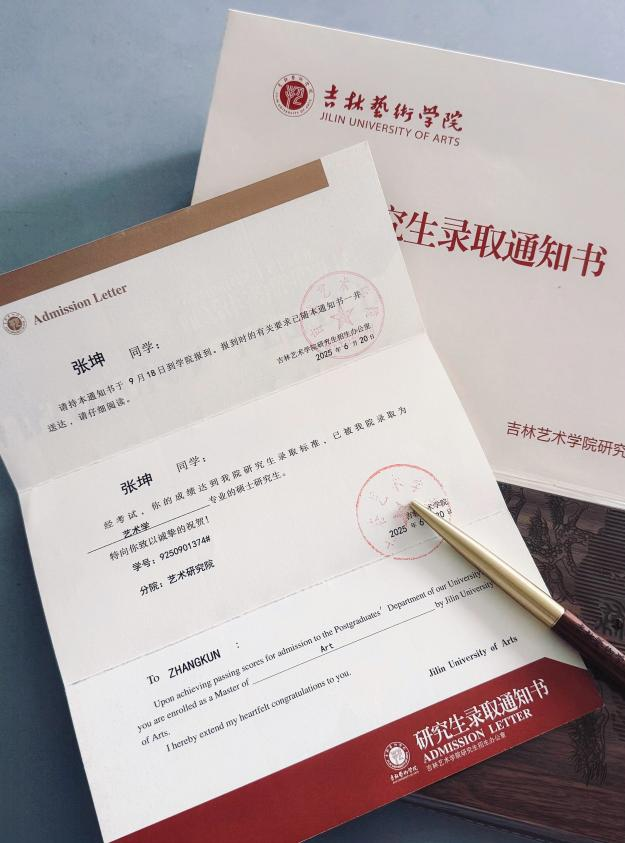 产品设计专业2025届张坤同学考取东北地区唯一一所综合性高等艺术院校——吉林艺术学院硕士研究生