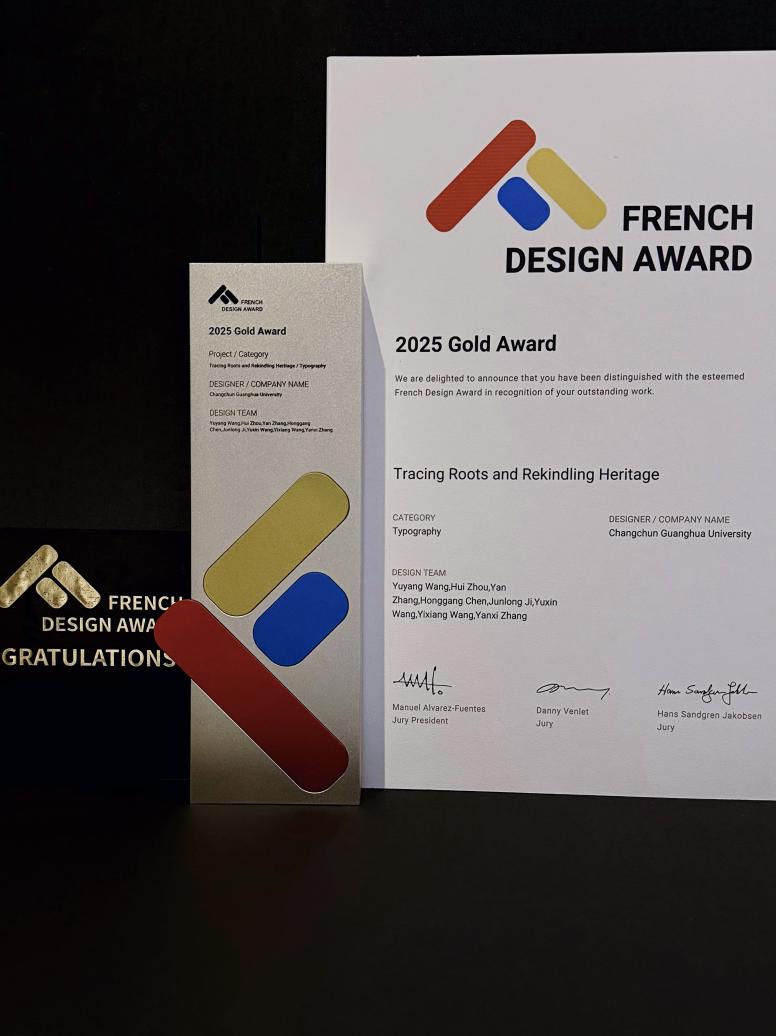 长春光华学院艺术设计学院王雨阳副研究员凭借原创设计作品在全球众多参赛作品中脱颖而出,荣获2025年度法国设计奖(French Design Award)金奖,并受邀赴法国巴黎出席官方颁奖典礼。此次获奖是我院设计科研成果首次摘得该国际顶级赛事最高奖项,实现了国际设计奖项的历史性突破。