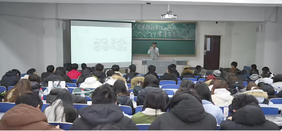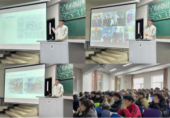 2025年3月26日,艺术设计学院环境设计系举办“榜样引领·设计传承”主题分享会,特邀2024届优秀毕业生、吉林建筑大学准研究生魏伦锐重返母校,为2023级学生传授设计技法与考研经验。院长徐景福、副院长周慧等师生100余人参与活动。