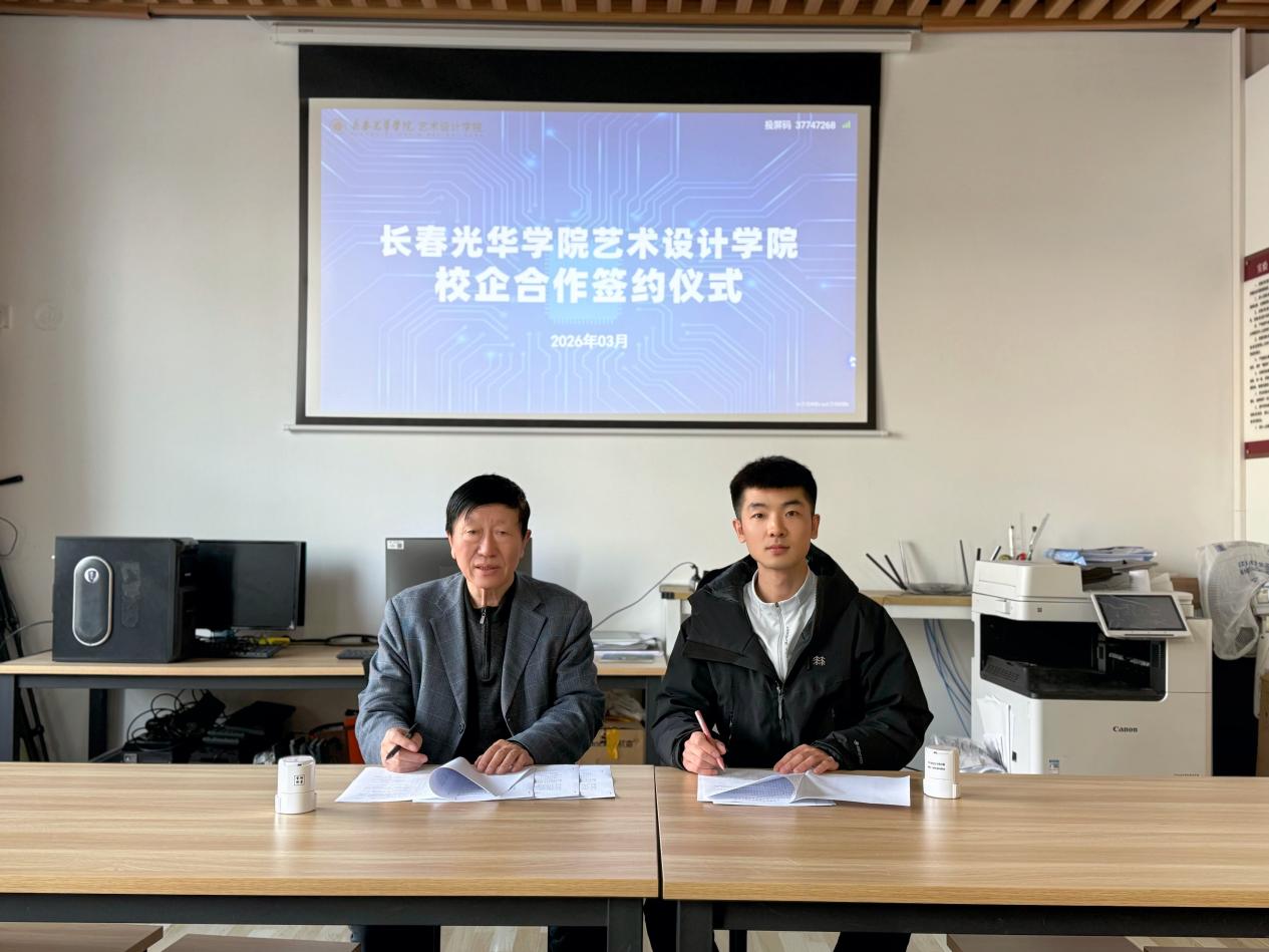为深化产教融合、推进应用型人才培养,搭建校企协同育人平台,2026年3月17日,长春光华学院艺术设计学院视觉传达设计专业与吉林省长春市超博教育辅助有限公司校企合作签约仪式顺利举行。院长徐景福代表学院与超博教育辅助有限公司总经理王超进行签约。